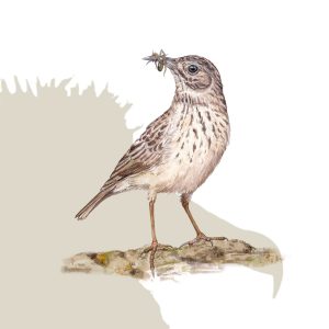 El cernícalo vulgar es una de las rapaces más pequeñas y habituales de nuestros campos. Se le reconoce por su vuelo inquieto, ágil pero certero. A fin de cuentas, es un halcón. Pero lo más característico es su habilidad para quedarse suspendido en el aire mientras busca presas. El macho luce tonos rojizos y cabeza gris, la hembra es más parda y robusta (como en la ilustración), y ambos comparten esas motas oscuras y uñas negras que los distinguen de su pariente, el primilla. Aunque en buena parte de Europa es migrador, aquí permanece todo el año sobre paisajes abiertos, barbechos y cultivos, donde caza topillos, insectos y pequeños reptiles antes de posarse en un poste para devorar su captura. Aún es común, pero la pérdida de linderos y el cambio en los usos agrarios limitan cada vez más sus territorios. Y, como ocurre con tantas especies familiares, basta verlo cernido sobre un prado para entender por qué merece seguir formando parte de nuestros paisajes.